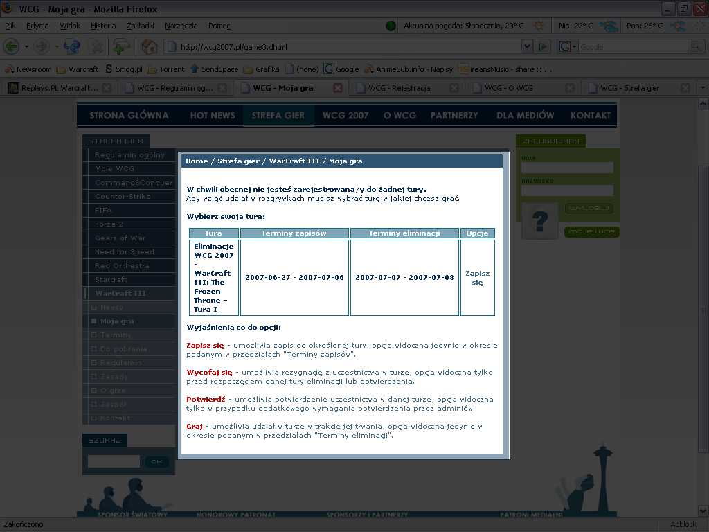 Aby zarejestrować się na stronie WCG Polska i wyrazić chęć udziału w turnieju należy:| 1. Wejść na stronę WCG |
