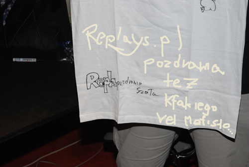 Na półmetku rozgrywek W3 znów wybrałem się by spełnić swój replaysowy "obowiązek" i cyknąć parę fotek (w końcu niby po to dostałem akredytację :P). Oczywiście zapomniałem założyć koszulki repli która leżała sobie spokojnie na jednym z krzesełek i tęskniła za mym wspaniałym ciałem, przez co pare osób ze "sceny" mnie nie rozpoznało czego oczywiście żałowałem, gdyż liczyłem na jakiś obiecany wpierdol na WCG, a jak wyszedłem kolejny raz już w koszulce, to scenowiczów już nie znalazłem, bo śpiącego przy stole Croma nie liczę. Nie było więc rady i trzeba było wracać do rozmów. Tym razem rozmowy były głównie o W3, gdyż Starcraft skończył swoje rozgrywki na scenie głównej i na miejscu komentatorskim rozsiadł się Phelot wraz z kobietą iziego, która występowała w roli maskotki, ale chyba rozpraszała i tak już dość znerwicowanego pierwszego komentatora polskiej sceny w3 i się szybko zmyła. W pressroomie zdążyliśmy bez problemu pogadać o naszym koffanym Phelociq, bo przez dość długi czas nie schodził z ekranów naszych "telebimów" (których w zasięgu wzroku miałem 4 czy 5), bo jakiś kabelek się odłączył i zamiast rozgrywki widzieliśmy samego komentatora. Po jakiś 10 minutach, gdy znudziło nam się obgadywanie ktoś się nad nami zlitował i skierował jedną kamerę za plecy TeRRoRa który akurat rozgrywał swoje gry z Paladynem (chyba :D). Kolejna gra wyglądała znacznie lepiej, bo kabelki zostały już prawidłowo podłączone. Wracając do Phelota, to muszę przyznać, że chłopak poradził sobie zajebiście zważywszy w jakim stresie przyszło mu pracować - nie działało mu przesuwanie obrazu myszką, musiał całować się z mikrofonem by było go w ogóle słychać, no i był to jego pierwszy i mam nadzieję, że nie ostatni występ na dużym turnieju w takiej roli. So... Phelot oby tak dalej :) Po wynudzeniu się na Warcrafcie i zrobieniu jakiś 50zdjęć (nie było komu/czemu robić tak na dobrą sprawę) zostałem też prawie uduszony przez Casina, bo strzelałem mu po oczach aparatem, bo obiecał, że jak będzie w drabince walczył z terrorem to zgodzi się na "sesję zdjęciową".